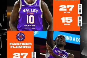 本场比赛太阳两名新秀均发挥出色,7号秀马卢阿奇14投10中,三分1中0,罚球5中5,砍下27分15篮板1助攻4盖帽;次轮状元弗莱明18投11中,三分9中4,罚球2中1,砍下27分13篮板2助攻3抢断;另外达米恩·鲍18投9中,三分7中3,罚球4中4,砍下26分5篮板8助攻4抢断1盖帽。
