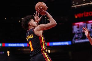 根据数据统计,杰伦·约翰逊是老鹰队史上第一位做到单场比赛至少15分15篮板15助攻的球员。