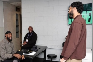 本场比赛,詹姆斯和塔图姆都因伤没有出战,不过他们进行了一场会面。