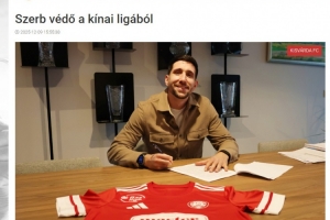 匈牙利甲级联赛球队小瓦尔道(Kisvárda FC)官方宣布与青岛海牛外援尼古拉·拉德曼诺瓦茨(Nikola Radmanovac)签约。拉德曼诺瓦茨2024年7月从俄罗斯联赛转投青岛海牛,为青岛海牛出场了42次。球员合同本月底到期自由身离队,转会将在明年初匈牙利窗口打开后完成。