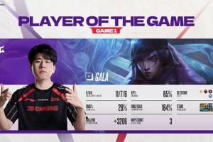体育资讯12月24日讯 德杯小组赛第二阶段JDG首局击败BLG,GALA凭借厄斐琉斯的亮眼表现斩获首局MVP!