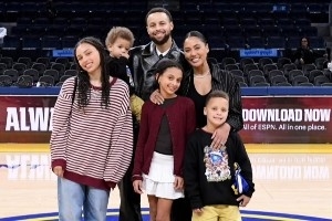 体育资讯1月1日讯 勇士球员库里更新社媒,晒出了一家六口的合照,喜迎2026。