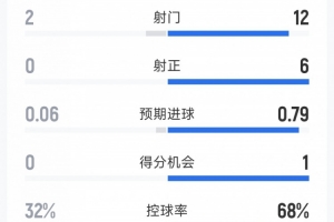 体育资讯1月8日讯 在本轮英超,曼联半场0-1落后于伯恩利,以下为双方半场数据对比: