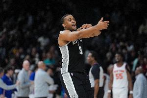 本场比赛,马刺球员凯尔登·约翰逊发挥出色,各种冲击内线效率十分高,他替补出战28分钟,13中11,三分3中2,罚球3中3,砍下27分6篮板,正负值+14。