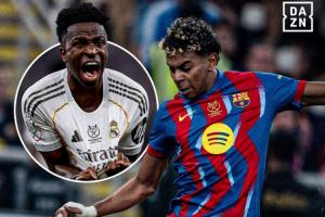 本场比赛,维尼修斯一度打进一粒精彩的一条龙破门帮助球队扳平比分,但最终巴萨凭借拉菲尼亚(2球)和莱万的进球取得胜利。