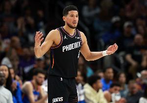 本场比赛布克手感一般,但频造杀伤,出战38分钟18投7中,三分5中1,罚球14中12砍下27分4篮板4助攻,也有4次失误,正负值-3。