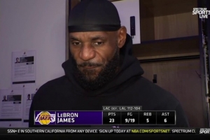 体育资讯1月23日讯 今日,湖人104-112客场不敌快船。赛后,湖人前锋詹姆斯接受了采访。