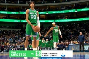 克里斯蒂已经得到20+的得分。算上本场比赛,克里斯蒂近11场已经有6场比赛单场20+;而赛季开始的前31场比赛,他仅有1场20+。