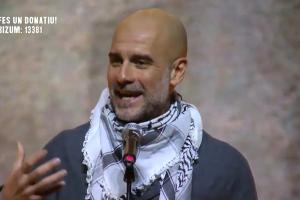 这位西班牙人在曼城的欧冠比赛一天后,回到了自己的祖国,并作为演讲嘉宾出席了在圣乔治宫举行的"Act x Palestine"慈善活动。瓜迪奥拉身披黑白相间的巴勒斯坦头巾,声援在加沙战争中失去父母的儿童。