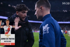 体育资讯2月1日讯 西甲第22轮比赛,巴列卡诺在伯纳乌以1-2的比分不敌皇马。本场比赛,巴列卡诺前锋德弗鲁托斯打进1球,赛后他被评为全场最佳球员。