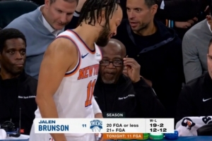 球队命中率50%+且助攻30+且篮板优势15+时胜率98% 今日尼克斯输球