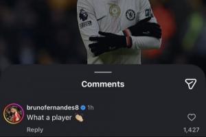 据太阳报报道,B费的留言在不到三小时内就收获了超5000个赞,曼联球迷称赞他为“布鲁诺特工”,他们认为B费正试图招揽帕尔默加盟曼联。切尔西球迷则让B费加盟切尔西,并警告他离帕尔默远点。