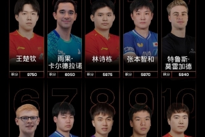 WTT男单世界排名:王楚钦断档第一,莫雷加德第二林诗栋第三