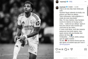 体育资讯3月4日讯 在得知罗德里戈受伤后,桑托斯前锋内马尔在社交媒体发文,为罗德里戈送上鼓励。