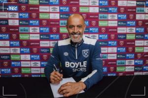 西汉姆联足球俱乐部荣幸地宣布任命努诺·埃斯皮里托·桑托为俱乐部新任男子队主教练。
