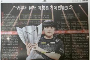 体育资讯10月3日讯 知名纸媒《首尔体育报》刊登Canyon夺冠瞬间,以下是部分译文:
