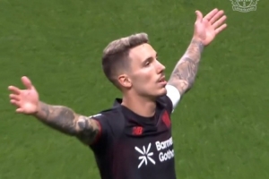 勒沃库森对阵法兰克福的德甲第三轮比赛,格里马尔多任意球双响,帮助勒沃库森3-1取胜,他打进的第二粒任意球尤其精彩,皮球划过美妙弧线直坠网窝,门将原地目送,勒沃库森宣布这粒任意球当选队内9月最佳进球。