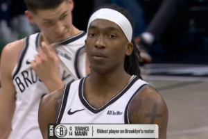转播方给出数据,29岁17天的曼恩已经是篮网阵中最老球员。