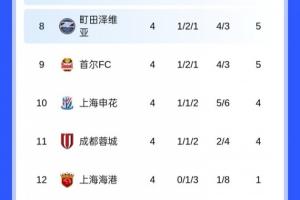 体育资讯11月05日讯 今日亚冠申花客场1-3不敌马来西亚球队柔佛新山,本轮战罢,最新亚冠东亚区积分榜如图。