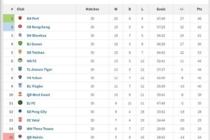 图2:如果所有比赛不打下半场,即打半场就结束(即去掉所有下半场进球),积分榜会怎么样?