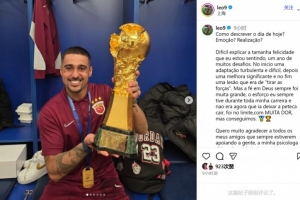 上海海港前锋莱昂纳多在社媒写道:“我该如何形容今天?是激动?还是成就?