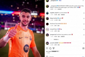 他也在赛后通过社媒晒出自己的庆祝照,并配文:“我们回家并且取得了一场大胜!很开心再次捍卫球门!让我们继续前进,巴萨球迷们!🔵🔴”