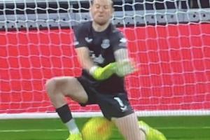 这次扑救中,皮克福德疑似闭眼导致出现下蛋失误,引发球迷群嘲。丢球后,皮克福德懊恼跪地,无奈摇头苦笑,并与队友进行了一番交流。